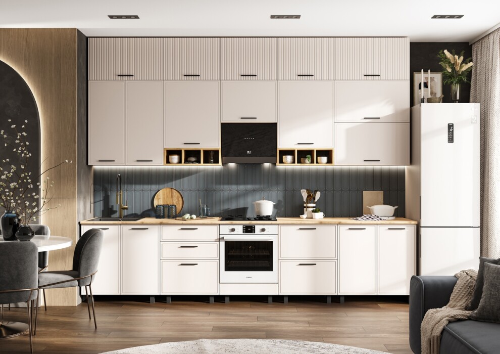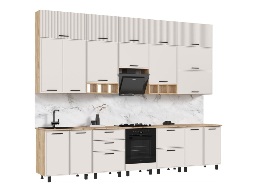 Изящная кухня «Бьянка» поражает своим величием, надежностью и основательностью. Строгие лаконичные формы и приглушенная цветовая палитра фасадов, настоящая находка для людей, любящих минимализм и простоту интерьера. Кухня Бьянка имеет фасады МДФ софт. Фурнитура входит в стоимость. Мойка, посудосушитель с поддоном заказываются дополнительно. Карнизы комплектуются отдельно и в стоимость гарнитура не входят.