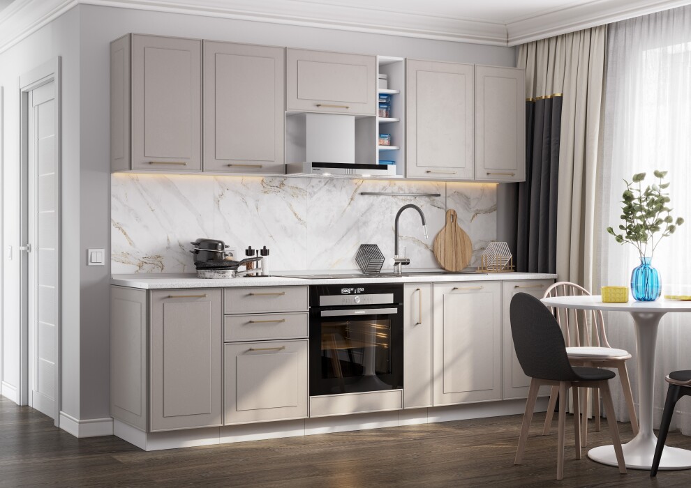 Изящная кухня «Кельн» поражает своим величием, надежностью и основательностью. Строгие лаконичные формы и приглушенная цветовая палитра фасадов, настоящая находка для людей, любящих минимализм и простоту интерьера. Кухня Кельн имеет фасады МДФ софт. Фурнитура входит в стоимость. Мойка, посудосушитель с поддоном заказываются дополнительно. Карнизы комплектуются отдельно и в стоимость гарнитура не входят.