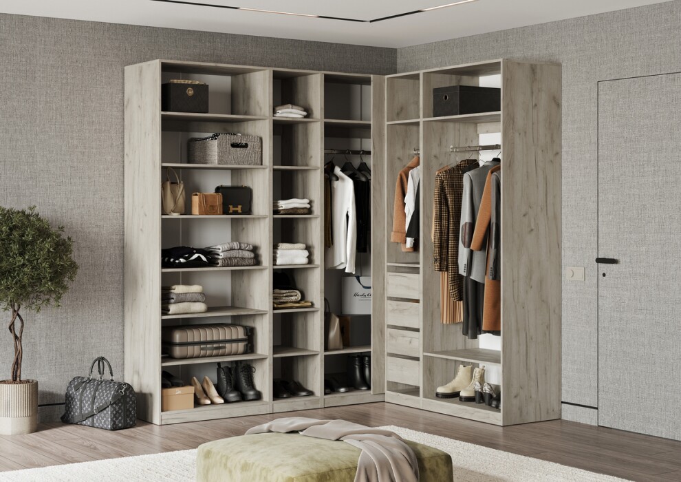 Изящная гардеробная «Ларго» поражает своим величием, надежностью и основательностью. Строгие лаконичные формы и приглушенная цветовая палитра фасадов, настоящая находка для людей, любящих минимализм и простоту интерьера. гардеробная «Ларго» имеет фасады МДФ софт.